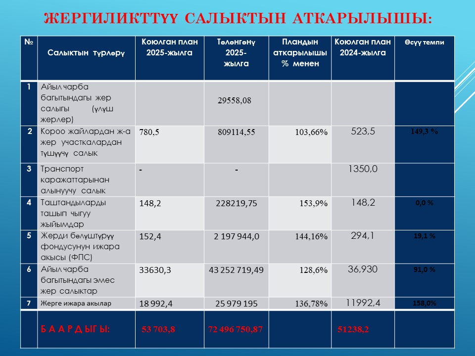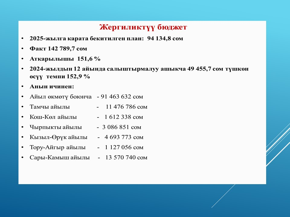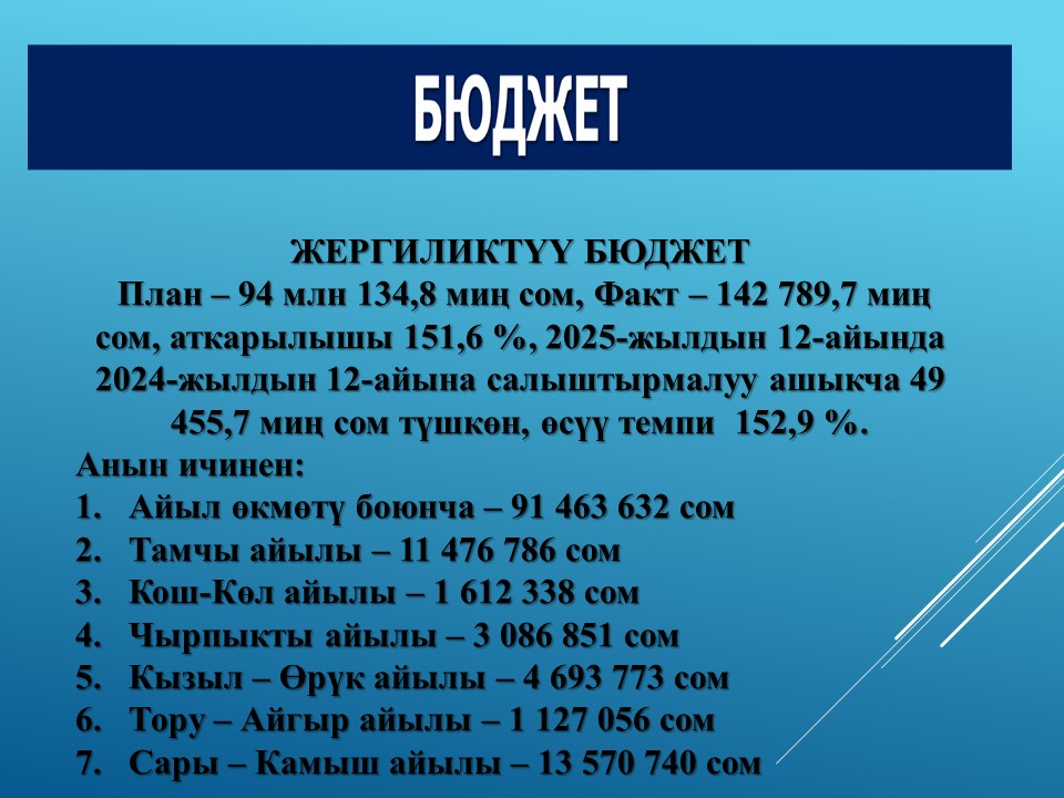 2025-жылга жергиликтүү бюджеттин аткарылышы боюнча маалымат
